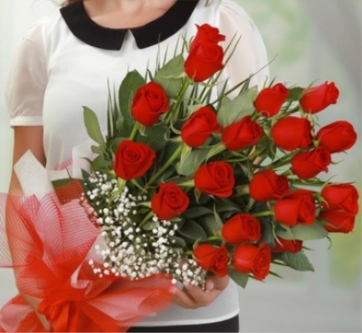 21 adet kırmızı gül buketi.