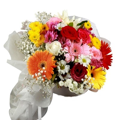 Mevsime göre renkli çiçeklerden ve güllerden hazırlanan buket.