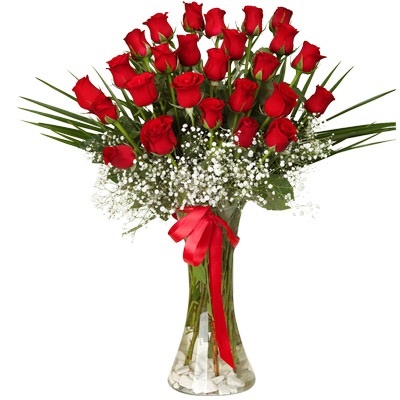 Cam vazoda 21 adet kırmızı gül aranjmanı.