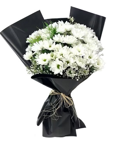 Beyaz krizantem papatyalardan hazırlanan buket.