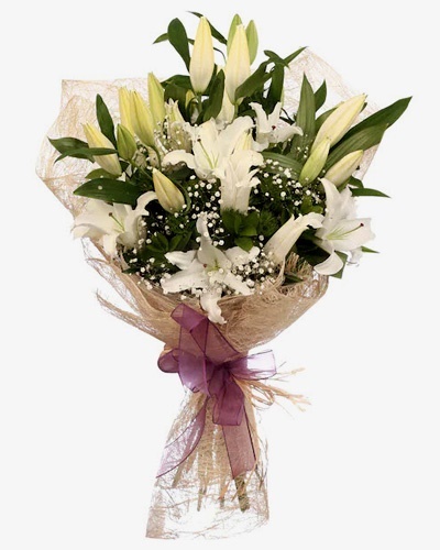 5 Dal Beyaz Kazablanka ile hazırlanan buket.