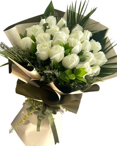 21 Adet beyaz güllerden hazırlanan buket.