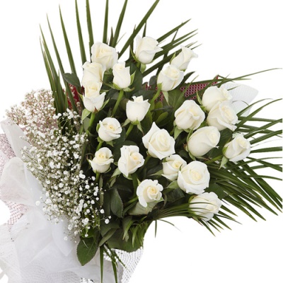 21 adet beyaz gül buketi.