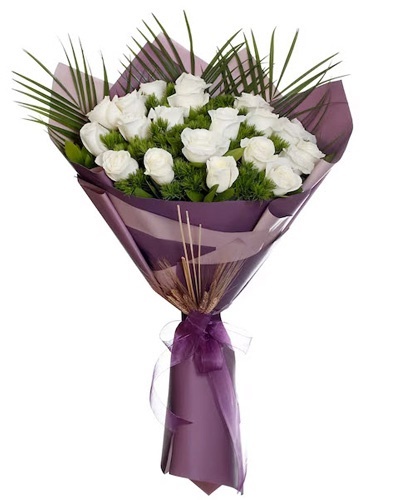 21 Adet beyaz güllerden hazırlanan buket.
